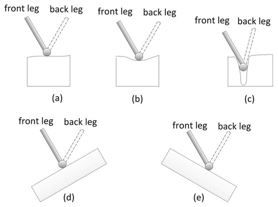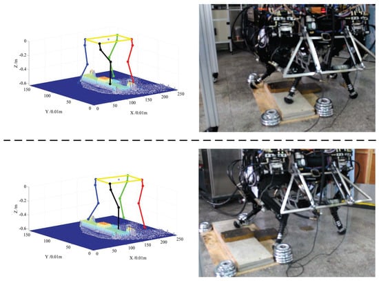 - Fankhauser, P.; Bjelonic, M.; Bellicoso, C.D.; Miki, T.; Hutter, M. Robust Rough-Terrain Locomotion with a Quadrupedal Robot. In Proceedings of the IEEE International Conference on Robotics and Automation, Brisbane, QLD, Australia, 21–25 May 2018; pp. 1–8. [Google Scholar]