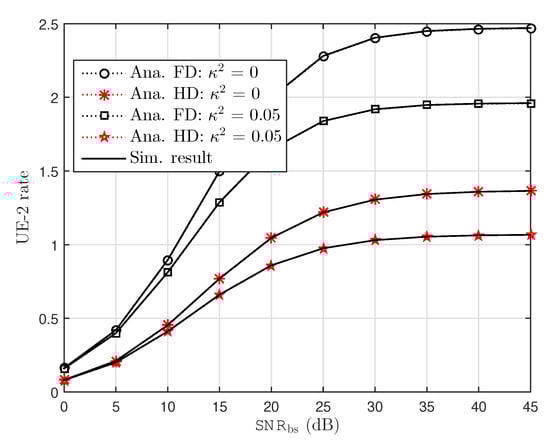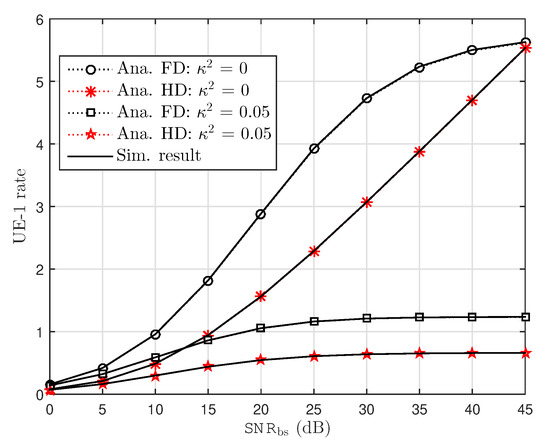 Similar to the ergodic capacity analysis in FD mode, the capacities of UE–1 and UE–2, respectively, in HD transmission mode can be straightforwardly computed as