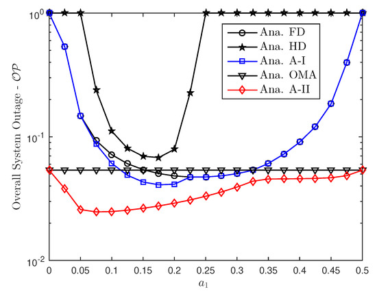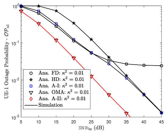 5.1.1. Outage Probability of UE–1 in A-I Scheme