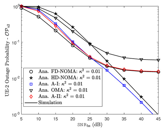 3.1.2. Outage Probability of UE–2 in FD Mode