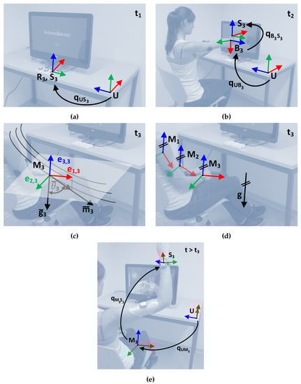 From there on, the non-constant orientation of all sensors relative to the common inertial frame can be computed with Equation (8).