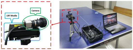 In the actual experiment, we built a measurement system with a 1D laser-camera combination, and calibrated the system with the method proposed in this paper. As shown in Figure 7, the system is composed of a MER-131-210U3C camera and a SKD-100 laser ranging system. The related parameters are shown in Table 3.