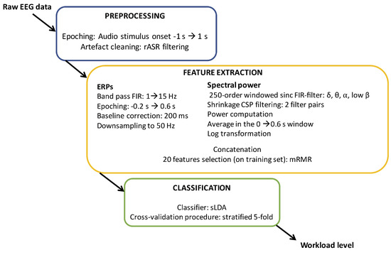 - Roy, R.N.; Bonnet, S.; Charbonnier, S.; Campagne, A. Efficient workload classification based on ignored auditory probes: a proof of concept. Front. Hum. Neurosci. 2016, 10, 519. [Google Scholar] [CrossRef] [PubMed]