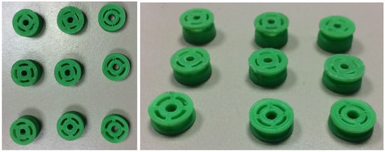 A total of 880 experiments were performed using the damper family above described. Each experiment consisted of a full cycle of 120 points on average. In Figure 5 a picture of nine 3D printed piston heads is shown. The experiments were performed using a test bench, which was instrumented to measure force, velocity and damper displacement. In Figure 6, the vehicle instrumentation is shown.