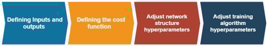 The process of selecting a suitable configuration of hyperparameters is called neural network design. A process consisting of four steps shown in Figure 7 was established to design a neural network able to model the hysteresis behavior accurately.