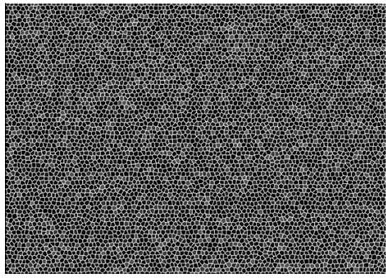 The water in a 500-mm-wide circular storage tank is dyed to a milky white colour to decrease the penetration of light. The projector projects the black and white hexagonal grid pattern onto the water surface. A cylindrical object with a diameter of 30 mm and a mass of 2 g is allowed to fall freely into the water from above the container to generate micro-scale ripples. A pulse signal generator controls the acquisition of the camera to collect images automatically while the laptop records the wave images during the generation, attenuation and disappearance of ripples in the water storage container. Images of the original calm water are shown in Figure 8.