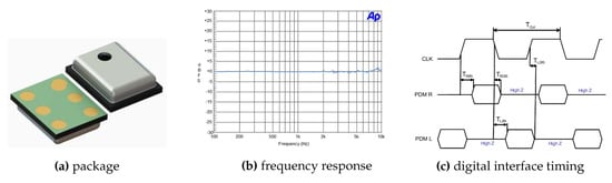 - STMicroelectronics. MP45DT02 MEMS Audio Sensor Omnidirectional Digital Microphone. 2016. Available online: http://www.alldatasheet.com/datasheet-pdf/pdf/519456/STMICROELECTRONICS/MP45DT02.html (accessed on 20 November 2018).