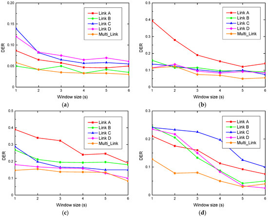 The DER in the dormitory: (a) DER with 30 s; (b) DER with 60 s; (c) DER with 90 s; (d) DER with 120 s.