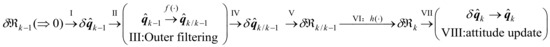 - Qin, F.; Chang, L.; Jiang, S.; Zha, F. A Sequential Multiplicative Extended Kalman Filter for Attitude Estimation Using Vector Observations. Sensors 2018, 18, 1414. [Google Scholar] [CrossRef]