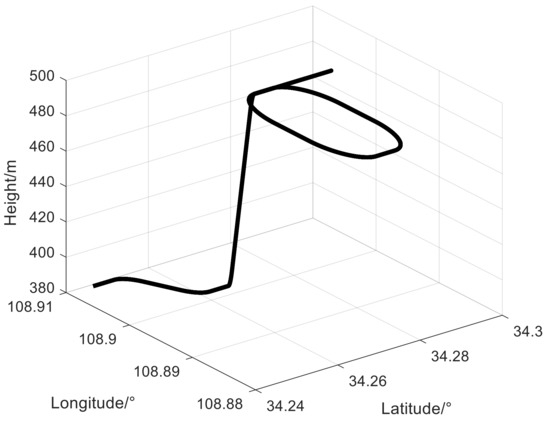 We compared the estimation performance for attitude, position, velocity, and computing. We conducted a loosely coupled SINS/GPS test with velocity as the measurement. The simulation test trajectory will be shown in Figure 4. The total simulation time was N = 1300 s. The total Monte-Carlo time was M = 50. In this simulation test, two metrics based on the mean error (ME) were used for the filtering accuracy check: ME1 is the performance of a single Monte-Carlo run and ME2 is the performance of the whole Monte-Carlo runs expressed in simulation time.