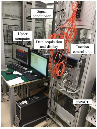 The small sensor information fusion system is actually an electrical drive system in high speed trains. Figure 1 presents the schematic diagram components of this platform [36]. It is an experimental platform of a high-speed train from the China Railway Rolling Stock Corporation in Zhuzhou, China. Several sensors are installed in different parts of traction components. By fusing the sensors and computational modules together with the aid of MATLAB R2014a (Mathworks, Natick, MA, USA) and dSPACE models (2014-A, dSPACE, Paderborn, Germany), the features of unexpected faults can be distinguished and the faults will be detected finally.