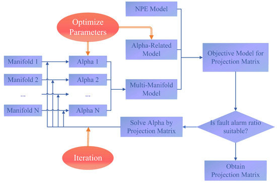 In many critical fields, the systems are generally confronted with large scale and complicated logic, contributing to a high dimension of data collected from sensors. Under such circumstances, a manifold learning algorithm aiming at dimensionality reduction shows its advantage in data mining [22,23], such as neighborhood preserving embedding (NPE) [24], locality preserving projection (LPP) [25], Laplacian eigenmap (LE) [26], locally linear embedding (LLE) [27] and more [28,29,30,31]. It has been proved that the discriminative ability will be enhanced tremendously once the intrinsic manifold structure is considered. To be specific, NPE is a linear technology for combining neighbored data points together to seek an optimal local distribution. Nevertheless, NPE merely concerns the designated points, which means a lack of concern regarding the paired data.