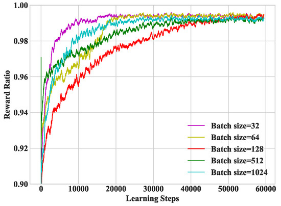 In Figure 6, we study heterogeneous DDLO under different batch sizes. It refers to the number of training samples extracted from the memory in each training interval. From the numerical studies, we set the batch size as 32 in the following simulations.