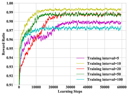 In Figure 7, we study heterogeneous DDLO under different training intervals. As a matter of fact, the training interval cannot be too small. In the following simulations, we set the training interval as 10.