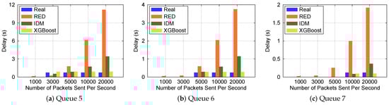 However, For Equation (5), because of the fast changes of SDN networks, it is difficult to get and at the same time by remote access. On the other hand, when the queue is congested, lost packets are counted in but not in , which results in a larger , so the queuing delay is inaccurate. To solve this problem, we propose two other methods. One is IDM as shown in Section 3.4; the other is a machine learning method using the XGBoost model, as shown below.