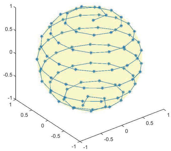In 2000, Robert Bauer proposed the spherical spiral method (referred to as SSM) [21]. With this method, N evenly distributed rotating reference points on the spherical surface can be obtained. The coordinates of these reference points can be calculated by Formulas (3)–(5).