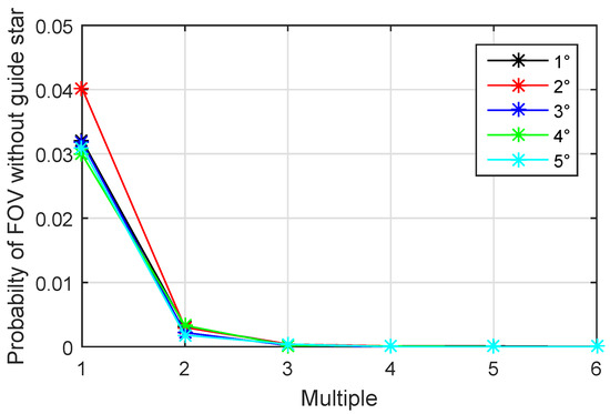 To verify this assumption, we use different radiuses of FOV and different multiples of as the number of reference points to generate the guide star catalog with ISSM2. Then the Monte Carlo test as described in Section 4.2 is conducted and the results are shown in Figure 9.