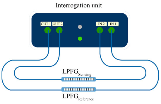 Sensing scheme with one LPFG acting as a reference sensor providing compensation to the second sensor.