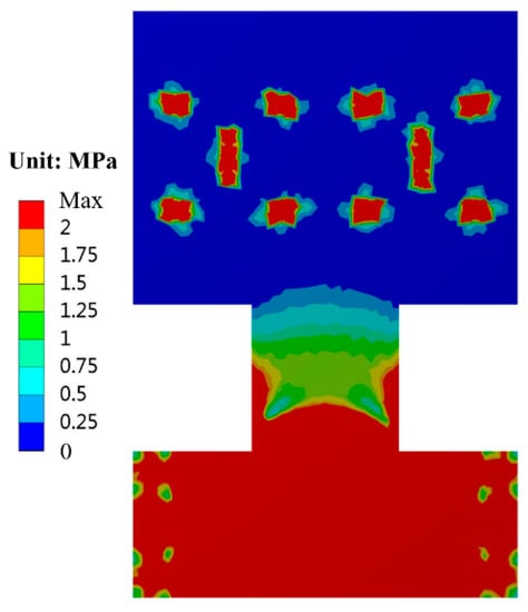 The simulated thermal stress distribution of the H-shaped substrate after die attach.