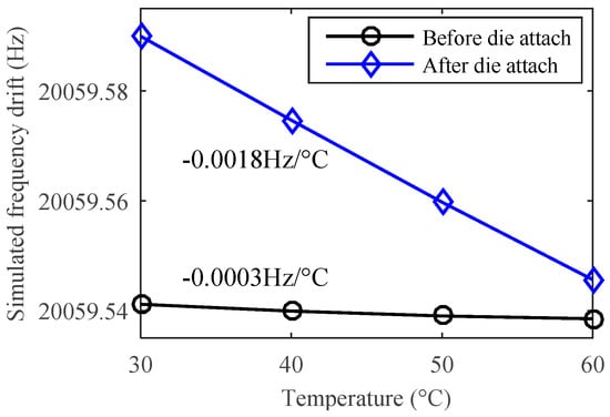The simulated temperature drift of a single resonator’s natural frequency dominated by the thermal stress in design A.