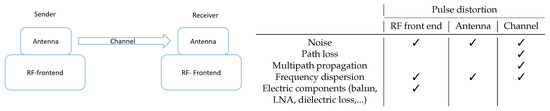 Ultra-wideband (UWB) link with the main causes of pulse distortion in a UWB localization system.