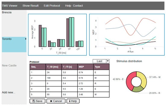 For sake of completeness, in Figure 6 a possible dashboard illustrating data available after a diagnosis protocol has been completed is shown. As stated in the introduction, the proposed solution allows a remote supervisor to interact in real-time with TMS-based instrument located all around the world. In particular, the current measurement results are presented in real-time in the “Show Result” page, whereas the supervisor can change the diagnosis protocol to be applied in the “Edit Protocol” page.