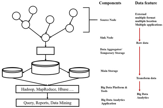 Figure 1 illustrates a basic structure of a big data system based on a WSN as an example of a fundamental system architecture. As shown in Figure 1, a sink node collects the data from sensor nodes and then delivers the data to a temporary storage for consequent data aggregation. After this step, the aggregated data can be manipulated by a big data framework using the main storage. The transformed data are handled by big data platforms and applications. Special issues of journals and many other papers have been published mechanisms to integrate a WSN as the main source in a big data system using the abovementioned architecture. An example of the special issue is “Big Data in Ubiquitous Wireless Sensor Networks” edited by Xiao et al. [4]; in this issue, 18 papers are presented to show advances of big data systems with ubiquitous WSNs in terms of computation and storage over cloud computing. Moreover, technical issues for big data in three-dimensional underwater sensor networks, wireless video sensor networks, wireless multimedia sensor networks, and typical WSNs are explained and described. In a comprehensive survey, Halde et al. [5] presented the issues and challenges of data collection through WSNs. The authors focused on energy consumption and heterogeneity of WSNs, which are observed during the analysis of big data in WSN. Harb et al. [6] addressed data management issues in WSNs by introducing different algorithms designed for data collection, aggregation, correlation, compression, and prediction; in addition, they showed potential and feasible application scenarios.