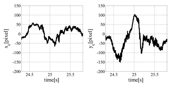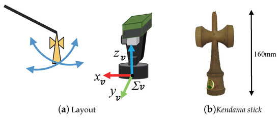 The high-speed vision system is based on IDP-Express manufactured by Photron Inc. (San Diego, CA, USA) The specifications are shown in Table 2. The camera captures 8-bit monochrome, pixel images at 1000 fps. The size of the camera head is 35 mm × 35 mm × 34 mm, and the weight is 90 g. The compact size and low weight of the camera reduce the influence of inertia.