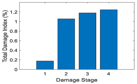 Test 2b also yielded a positive trend of RSSI using the damage index. Test 2b showed that with the increase in the damage stage, which was an increase in crack volume, an increase of total damage index occurred.