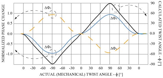 When the sensor is subjected to twist/rotation by angle Φ, optical path length change can be expressed as:
