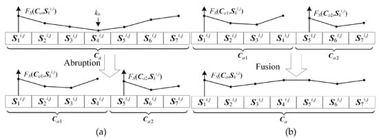 Then abruption and fusion are performed to find the updated grey wolf positions. Tracklet abruption and fusion mimic the reproduction in the nature. Given parent wolves, selected from the survival, child wolves which inherit the merits of parents are generated. Here, some better solutions maybe generated by existing candidate solutions. In abruption, unappreciated association of measurement sets should be broken up. The fitness function of sets FS(Ski,j, Ca) of each candidate solution has been calculated in the last step. A candidate solution can be broken up at the measurement set which has the lowest fitness function if Equation (36) holds: