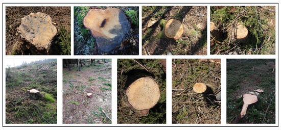 Sample of images in the image collection with different distances to the stumps, occlusions, and lighting conditions.