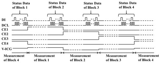 The switching time of each CE terminal is due to the order, as shown in Figure 3. The block whose CE terminal becomes high is activated. The measurement conditions data of each block are saved into Shift resister when CE terminal changes to be high.