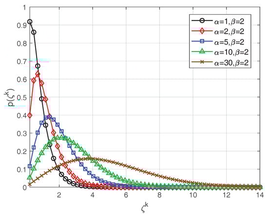 - Calculation of birth densityA set of birth particles is drawn from the proposal density, whose positions are uniformly distributed within some highest measurements [22]. The sampled birth particles for frame k can be represented aswhere is the proposal density, and the symbol “∼” means the operation of drawing samples from the proposal density.Based on the likelihood ratio proposed in Equation (27), the non-normalized weights of these birth particles can be calculated bywhere the prior probability density is a uniform distribution. Then, the normalized weights can be obtained by