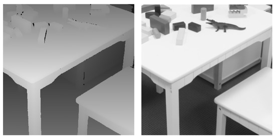 - Silberman, N.; Hoiem, D.; Kohli, P.; Fergus, R. Indoor segmentation and support inference from RGBD images. In Proceedings of the European Conference on Computer Vision (ECCV), Florence, Italy, 7–13 October 2012; pp. 746–760. [Google Scholar]