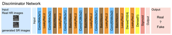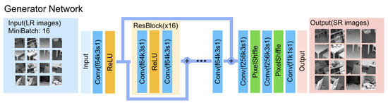- Ledig, C.; Theis, L.; Huszar, F.; Caballero, J.; Aitken, A.; Tejani, A.; Totz, J.; Wang, Z.; Shi, W. Photo-Realistic Single Image Super-Resolution Using a Generative Adversarial Network. In Proceedings of the IEEE Conference on Computer Vision and Pattern Recognition (CVPR), Honolulu, HI, USA, 21–26 July 2017. [Google Scholar]