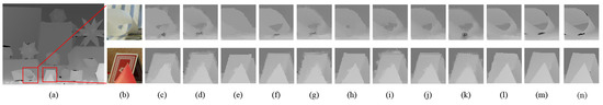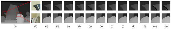 - Li, J.; Lu, Z.; Zeng, G.; Gan, R.; Zha, H. Similarity-aware patchwork assembly for depth image super-resolution. In Proceedings of the IEEE International Conference on Computer Vision and Pattern Recognition (CVPR), Columbus, OH, USA, 24–27 June 2014; pp. 3374–3381. [Google Scholar]