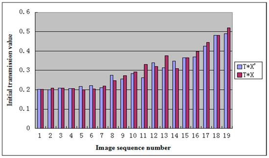 According to our experimental results, in a hazy image, the range of is generally between 0.4 and 0.6. Although the image haziness flag can characterize the nature of the image, taking as the initial transmission value to get the optimal transmission leads to an excessive value of . Thus, we set a correction value , and set as the initial transmission value to decrease this initial value.