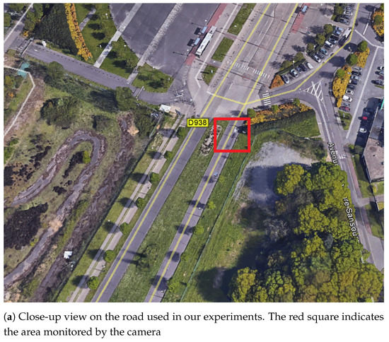 The camera and recording set were placed on a post at 1.5 m (4.92 ft) high (see Figure 4). The road monitored corresponds to a divided highway used by commuter from the South of Rouen area (see Figure 4).