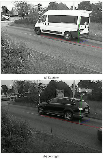 - Dubská, M.; Herout, A.; Sochor, J. Automatic camera calibration for traffic understanding. In Proceedings of the British Machine Vision Conference 2014 (BMVC 2014), Nottingham, UK, 1–5 September 2014. [Google Scholar]