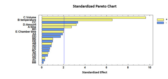 For a visual representation of the effects and their combinations, a standardized Pareto Chart is depicted in Figure 2.