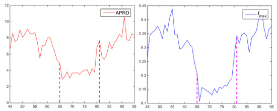 The blue curve and the red curve above respectively show how fmax and APRD varies between the 45th frame to the 95th frame. The occlusion occurred between the 64th frame to the 81th frame.