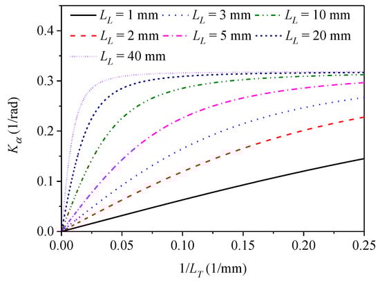Theoretical curves Kα plotted against inverse of the fiber spin pitch 1/LT for different values of the linear beat length LL.