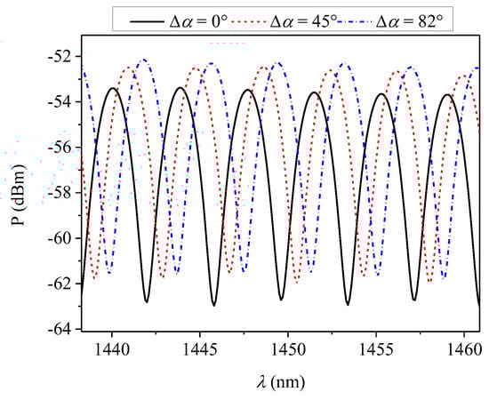 where Δφ is the phase delay between elliptically-polarized eigenmodes. Twisting the fiber end-section by an angle dα affects the phase delay Δφ, which in turn causes the shift of the observed fringe by dλ. The two parameters are related to each other in the following way: