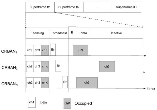 | Bi(t,Ck) | Bi(t, Ck) = 1 means that i-th CRBAN occupies channel Ck in superframe t; Ck ∈ CIi(t). |
