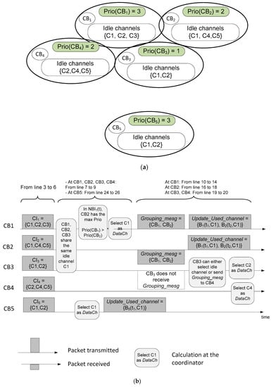 | 4. Check the list of idle channels CIy(t) of each CBy |