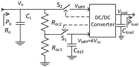 In order to periodically update Voc (i.e., a change in Pav changes Voc), the described sequence is periodically repeated, with the sampling period being much shorter than the regulation period. In this way, Vo will settle most of time at VMPP. To increase the efficiency at light loads, the DC/DC converter uses special control techniques such as pulse frequency modulation (PFM) or burst-mode [36].