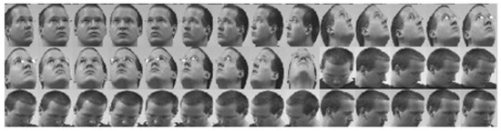 The Head Pose database (Figure 8) [59] includes 2790 images of faces taken from 15 individuals with pan and tilt variation angles from −90 to +90 degrees. For each individual, 2 sets with 93 different positions were captured [60].