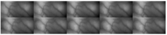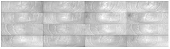 This database is organized by the Polytechnic University of Hong Kong [63], and is freely available online. Based on the database description, finger knuckle print (FKP) images were collected from 165 individual volunteers (males and females) [64]. The samples were collected in two distinct sessions, and in each one 6 images were captured from 4 fingers (including left and right index finger and the left and right middle finger). Therefore, 7920 finger images in total were taken from 660 various fingers. In our experiments, the original image of the database is cropped and is then resized to 32 × 32 pixels. Figure 12 illustrates a cropped sample of the FKP database.
