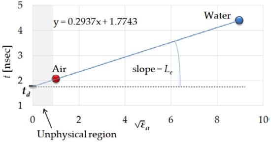 The delay time (td) and electrical length (Le) of the internal signal rod at the probe must be calculated, according to reference [34]. The solution of the appropriate system of equations can be graphically illustrated as shown in Figure 9.